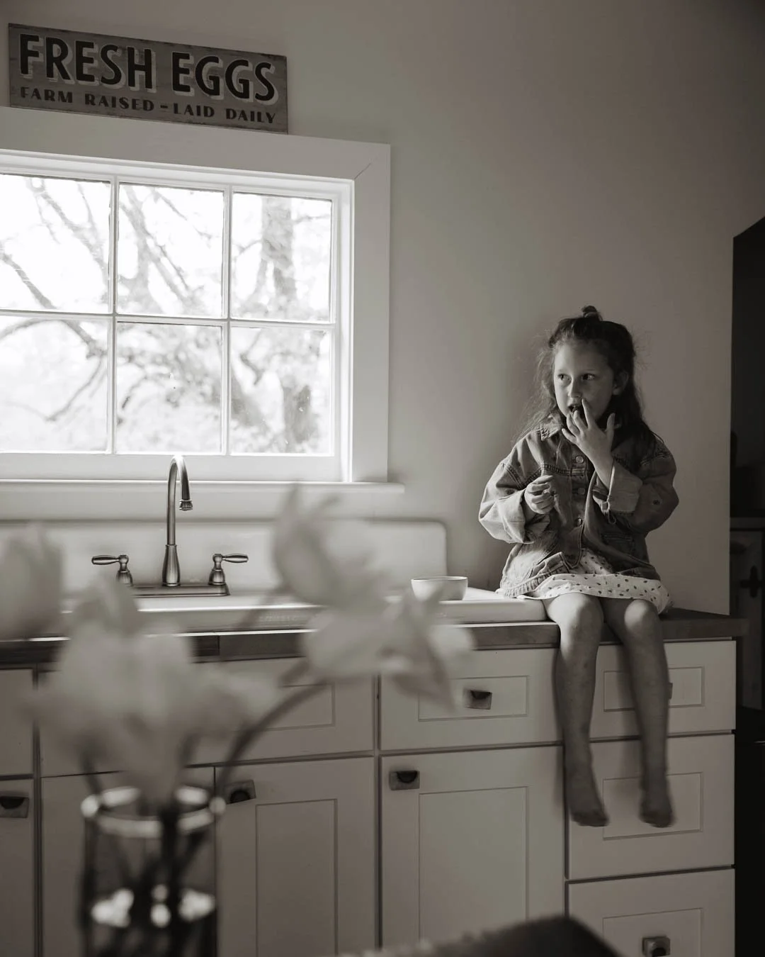 One of the top questions I get here as a family photographer in Northern Vermont is how I work with all the dark and gloomy days we have. Truth be told, the lighting that comes with a cloudy, grey day is my favorite to work with as it leads to some truly gorgeous photos. The trick is knowing how to work with it to produce beautiful pictures for you and your family. When it comes to making indoor family photos, I will always choose a cloudy day over direct sunlight.
